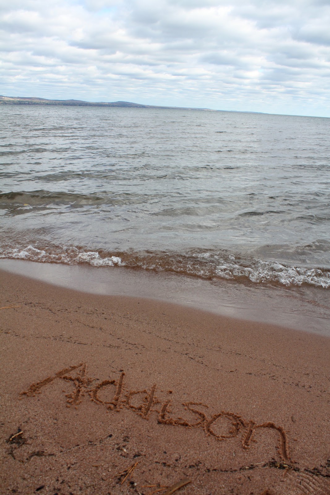 Today we were down at the beach- Park Point in Duluth. I wrote many names on the beach- all babies that have been lost. I could have written so many more names today. I wanted to, but it was so cold, and we were contending with a slightly uncooperative toddler. If I didn't get to your child's name, it doesn't mean I wasn't thinking about them, I most definitely was... The picture of the two hearts represents all the other babies' names I didn't have a chance to write...
